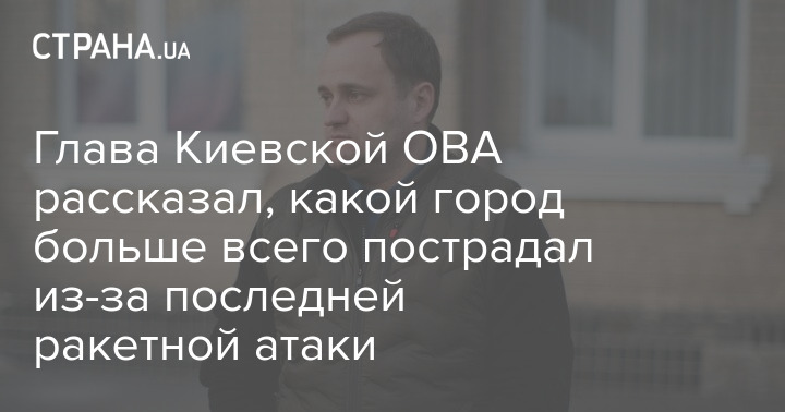 Глава Киевской ОВА рассказал, какой город больше всего пострадал из-за последней ракетной атаки