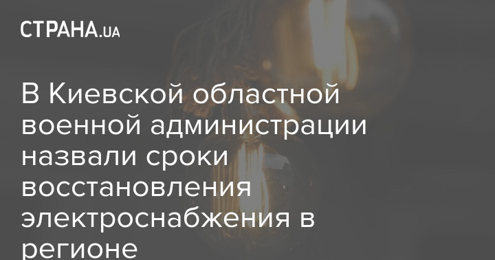 В Киевской областной военной администрации назвали сроки восстановления электроснабжения в регионе