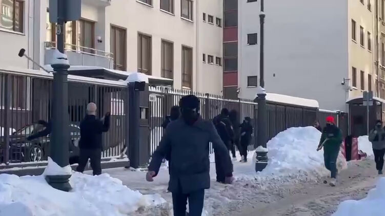 На опубликованном видео в Телеграм видно, как группа мужчин, скрывая лица масками, перебросили несколько кувалд через забор дипведомства.