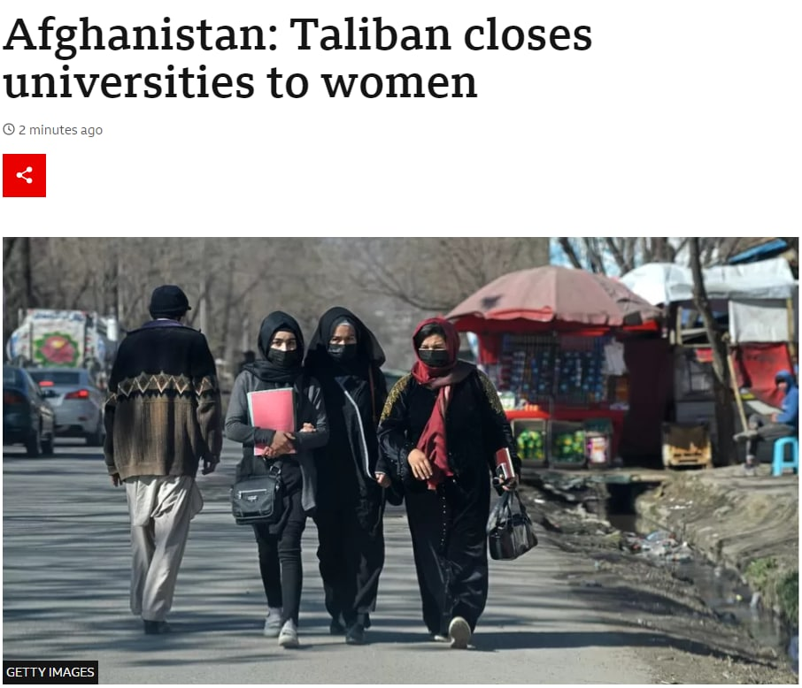 "Талибан", находящийся у власти в Афганистане, запретил женщинам учиться в университетах.