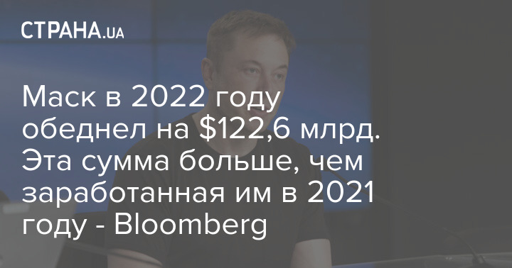 "Убытки Маска за год теперь составляют $122,6 млрд, что превышает сумму, которую он заработал в 2021 году", — говорится в статье.