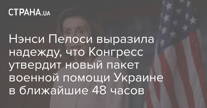 Спикер Палаты представителей Нэнси Пелоси выразила надежду, что Конгресс США утвердит новый пакет военной и экономической помощи Украине в ближайшие 48 часов.