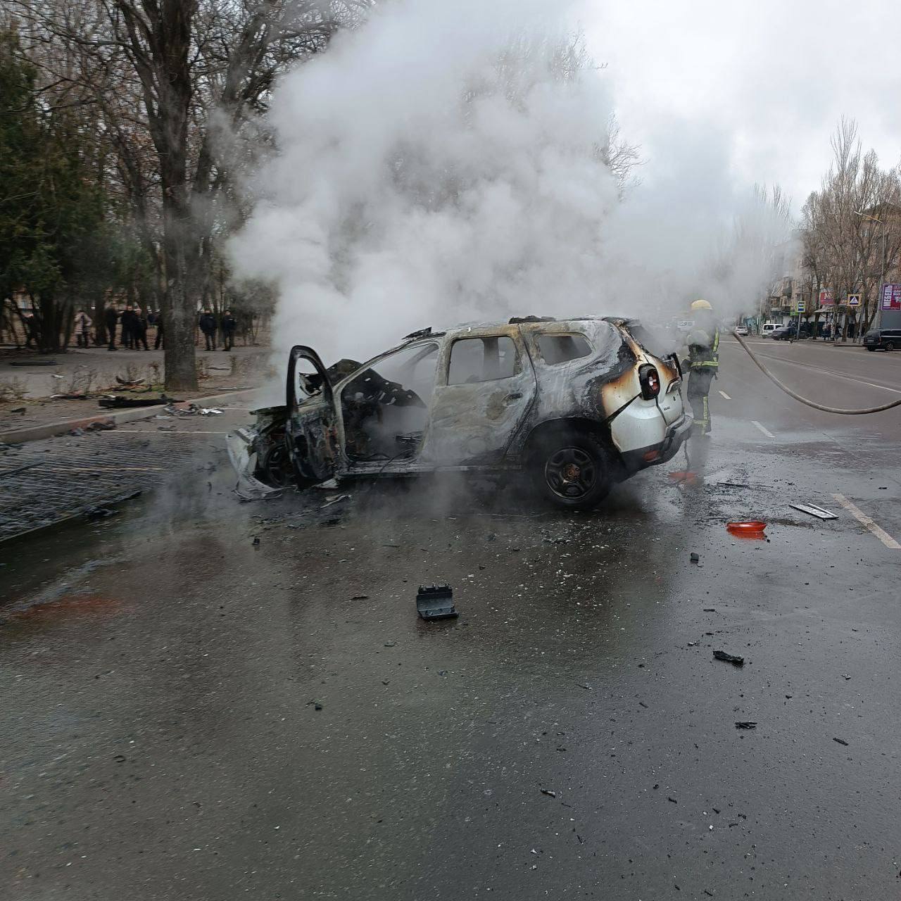 07:54 Прилет по Херсону. В городе стоит дым, на месте попадания пожар.