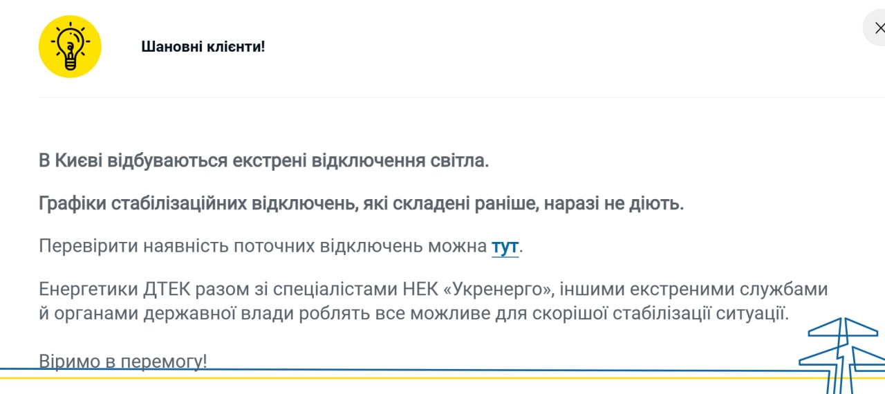 18.35 В Киеве продолжают действовать экстренные графики отключений электричества.