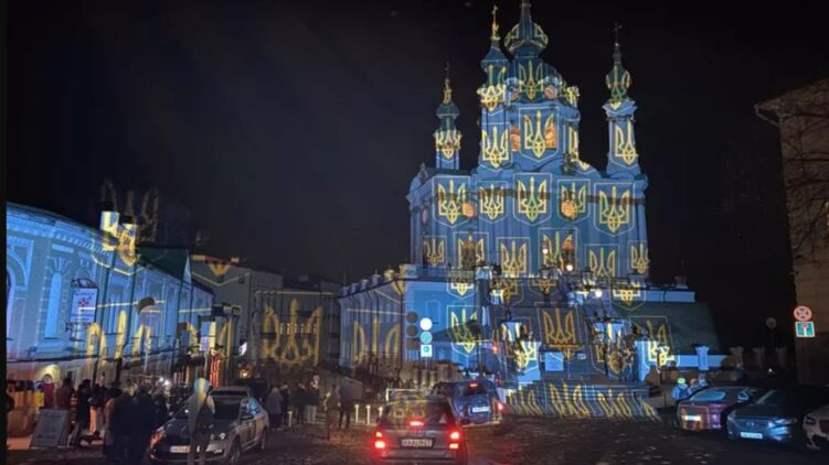 Известный швейцарский художник подсветил узорами Андреевскую церковь в Киеве