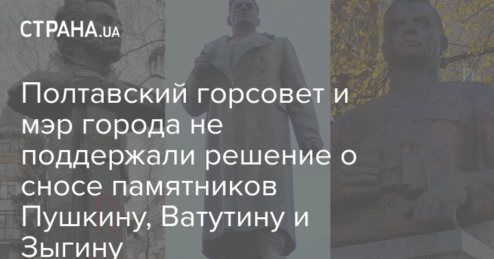 Депутаты Полтавского городского совета не поддержали демонтаж памятников генералам Николаю Ватутину, Алексею Зыгину (погибшему при освобождении Полтавской области), а также поэту Александру Пушкину. Против сноса выступил и мэр города Александр Мамай.