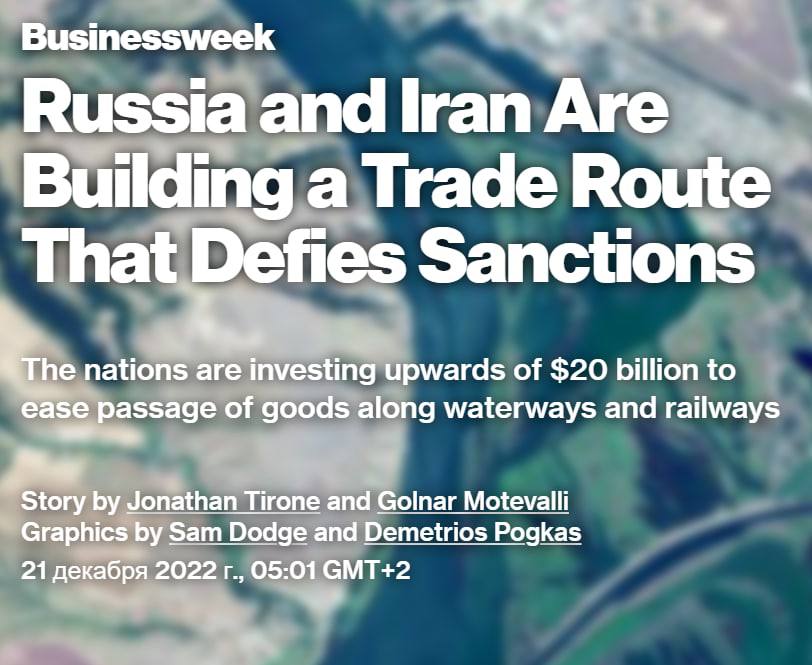 Цель проекта - ускорение доставки грузов по рекам и железным дорогам, связанным Каспийским морем. Данные отслеживания судов, собранные Bloomberg, показывают, что десятки российских и иранских кораблей, в том числе подпадающие под санкции, уже курсируют по этому маршруту.