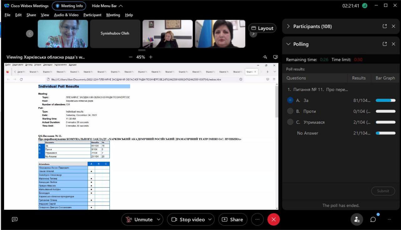 За то, чтобы убрать из названия слова "русский" и Пушкин", на сессии проголосовал 81 депутат, еще двое - воздержались. Всего в областном совете - 104 депутата, то есть, 21 человек своего мнения по этому поводу не высказал.