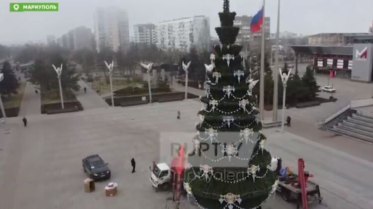 В Сети появилось видео новогодней ёлки в оккупированном Мариуполе.