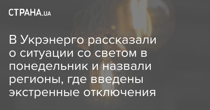 В Укрэнерго рассказали о ситуации со светом в понедельник и назвали регионы, где введены экстренные отключения