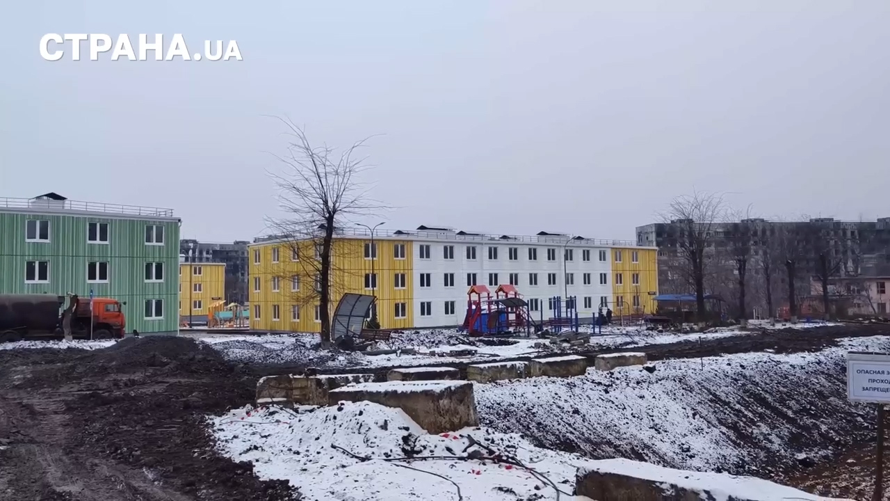 Большая часть Мариуполя до сих пор в руинах. Часть домов сносят. Однако строятся и новые дома, ремонтируются поврежденные. Восстанавливаются школы и больницы.