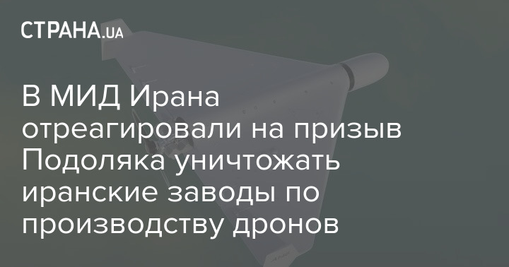 В МИД Ирана отреагировали на призыв советника главы Офиса президента Михаила Подоляка уничтожать иранские заводы по производству дронов и арестовывать поставщиков беспилотников.