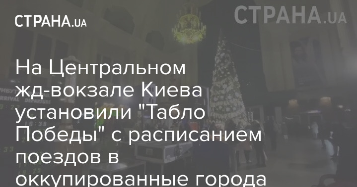 В Киеве на Центральном ЖД-вокзале установили "Табло Победы" с расписанием движения поездов в оккупированные города Украины (в реальности они не ходят). Из не оккупированных указан только Херсон. Он выделен белым цветом.