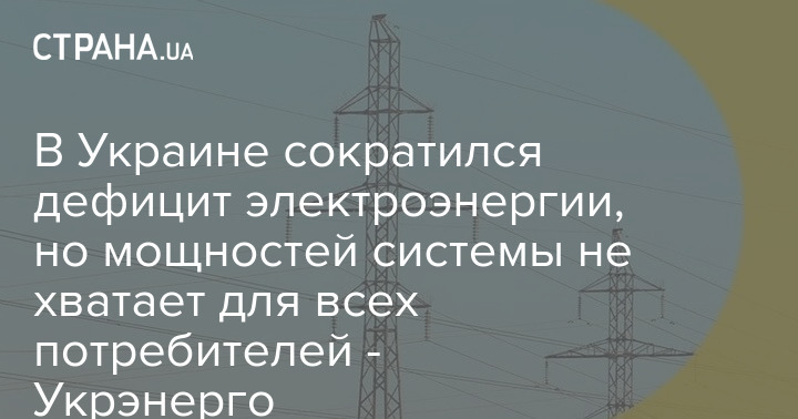 В Украине сократился дефицит электроэнергии, но мощностей системы не хватает для всех потребителей - Укрэнерго