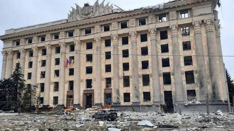 Здание Харьковской ОГА после удара. Фото - соцсети