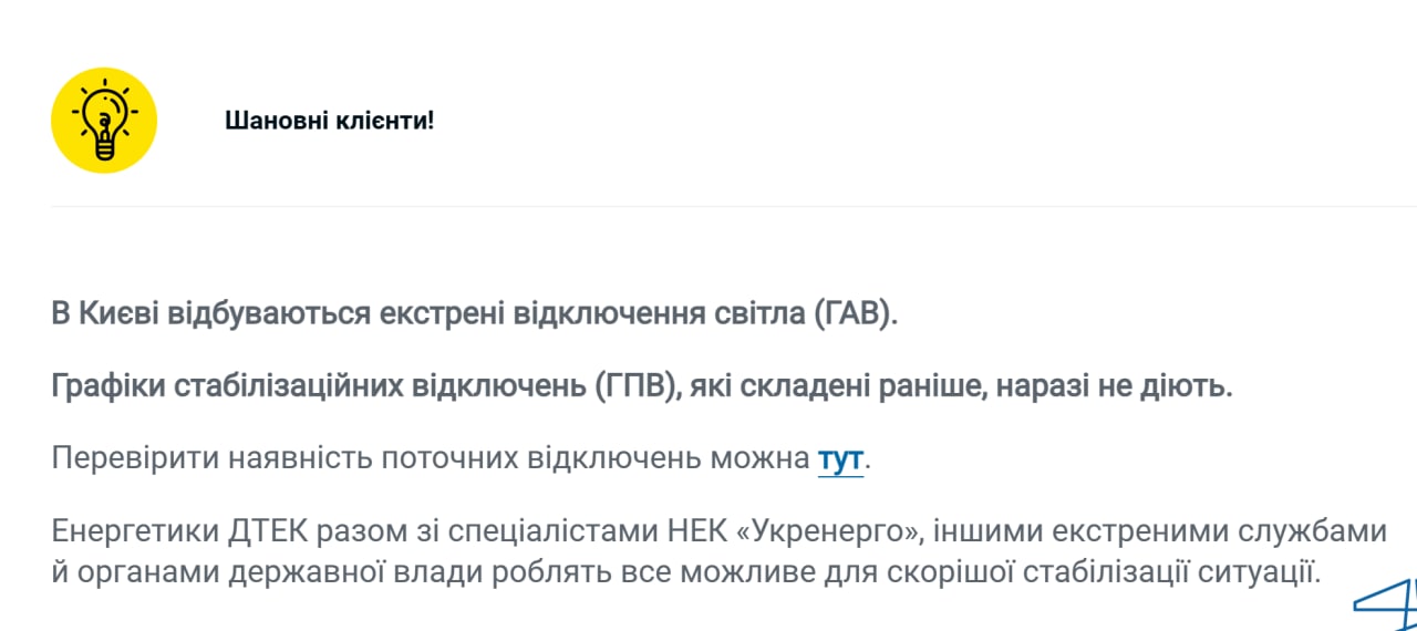 Об этом говорится в сообщении ДТЭК сегодня утром.