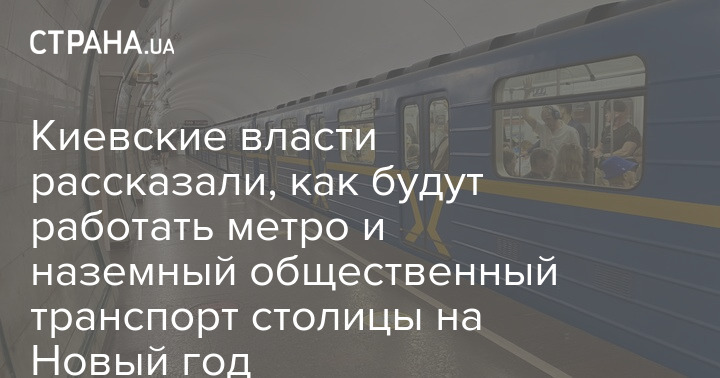 В Киеве, в субботу, 31 декабря, как и в другие дни, метрополитен будет работать до 22:00, а наземный общественный транспорт - до 22:30.