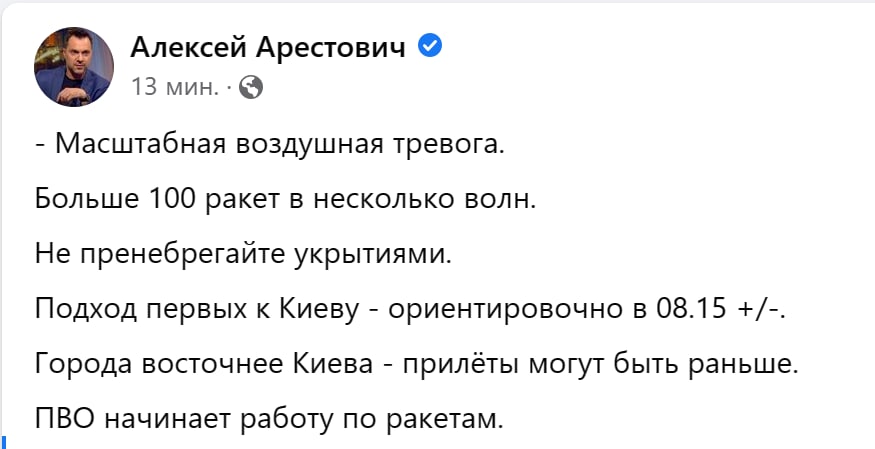 Сегодня РФ планирует запустить по Украине более 100 ракет в несколько волн - Арестович