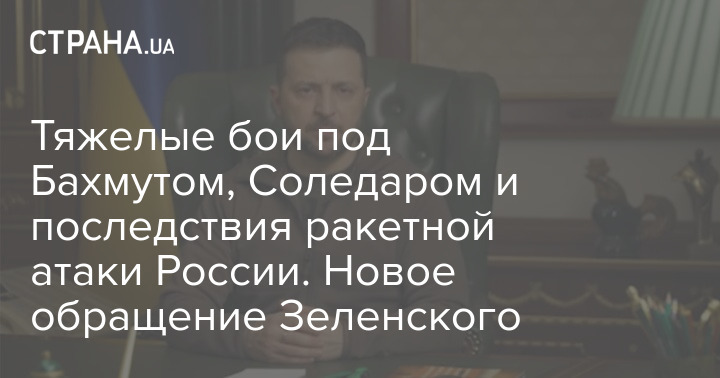 Тяжелые бои под Бахмутом, Соледаром и последствия ракетной атаки России. Новое обращение Зеленского