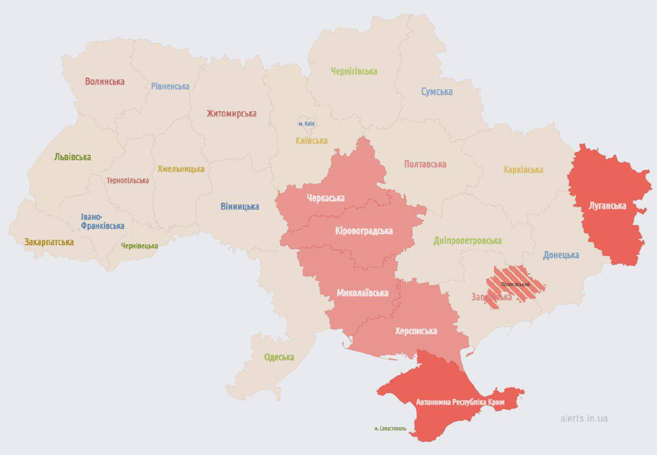 22:32 По Украине распространяется воздушная тревога. Сейчас она в Днепропетровской, Харьковской, Николаевской и Херсонской областях.