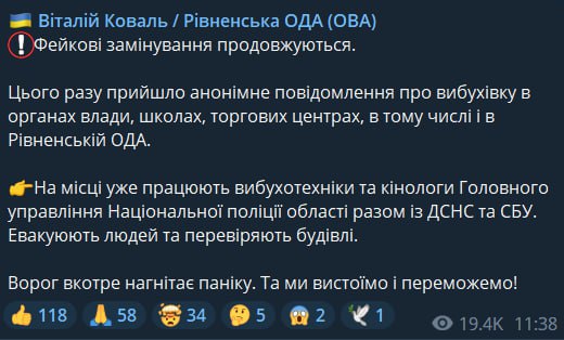 Позже о минированиях сообщили в Ровенской области.