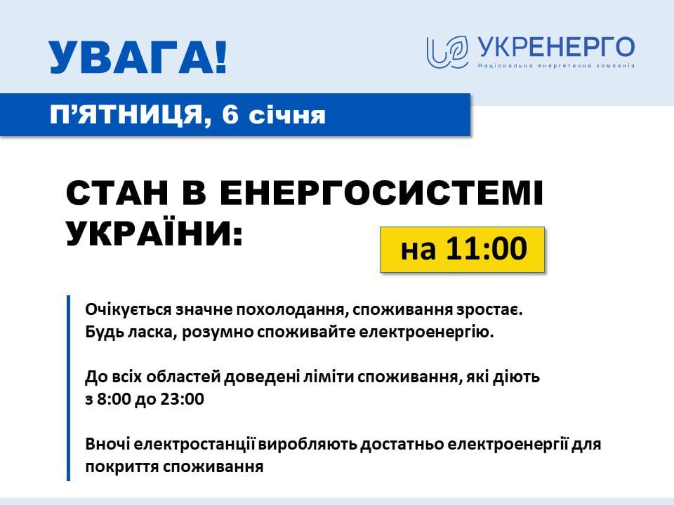 11.15 В Украине с похолоданием растет потребление электричества. Во всех областях введены лимиты потребления с 8 утра до 11 ночи, сообщили в Укрэнерго.
