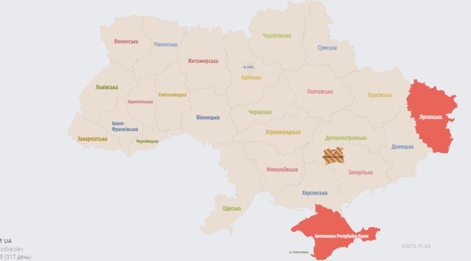 09.05 Воздушная тревога на юго-востоке Украины.