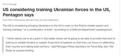 06.40 Минобороны США рассматривает возможность обучать украинских военных работе с системой "Patriot".