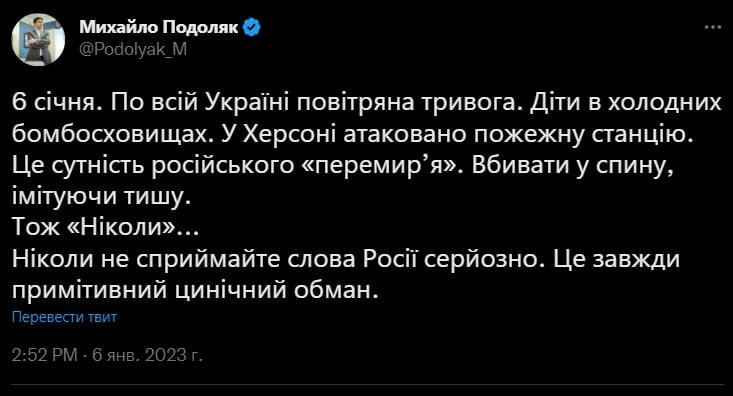 09.30 Путин объявил "рождественское перемирие" чтобы ударить по репутации Украины, заявили в Американском институте изучения войны.