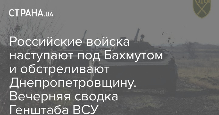 Российские войска наступают под Бахмутом и обстреливают Днепропетровщину. Вечерняя сводка Генштаба ВСУ