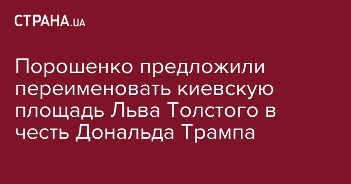 На официальном сайте президента Украины зарегистрировали электронную петицию, в которой предложено Петру Порошенко переименовать площадь Льва Толстого в Киеве в честь Дональда Трампа.