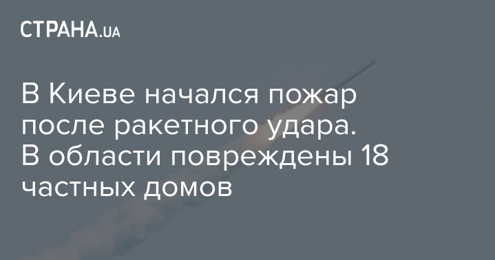 В Киеве начался пожар после ракетного удара. В области повреждены 18 частных домов