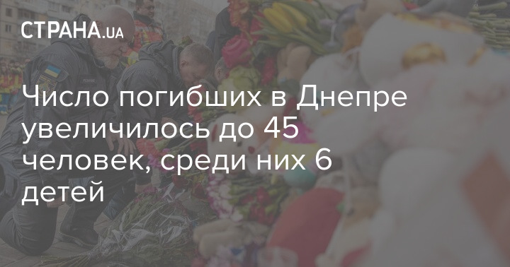 В Днепре число погибших во время атаки россиян по многоэтажке увеличилось до 45 человек, среди них 6 детей. Еще 75 человек получили ранения.