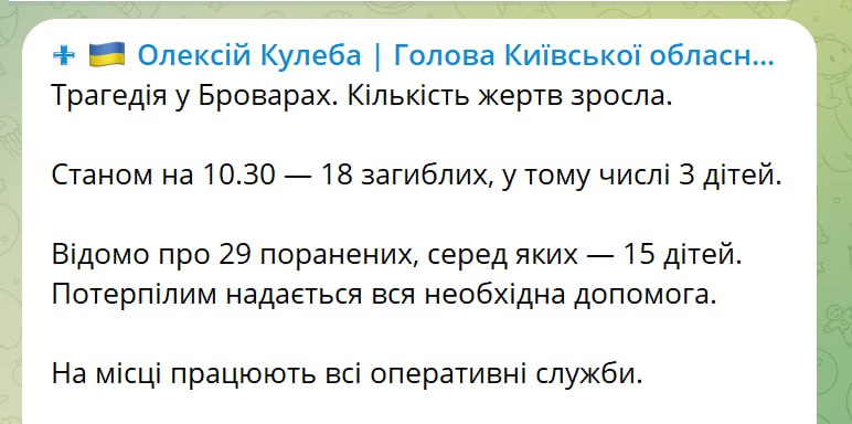 10.55 Погиб еще один ребенок в Броварах - уже трое детей стали жертвами авиакатастрофы. Всего 18 жертв, сообщили власти Киевской области.
