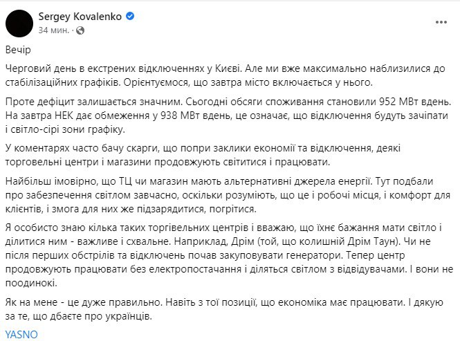 21.18 ДТЭК рассматривает вопрос создания аварийных бригад, которые по жалобам граждан будут выключать дома, в которых есть свет.