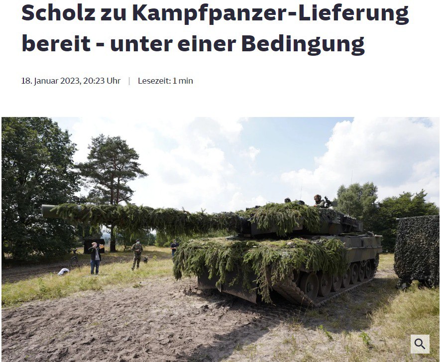 Внешне это выглядит как отказ синхронизировать поставки немецких и американских танков. Но окончательное решение будет понятно, вероятно, после встречи в Рамштайне, которая намечена на 20 января.