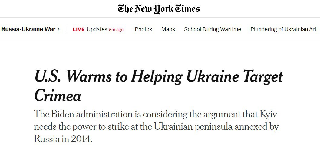 Издание пишет, что администрация Байдена пришла к выводу, что, если ВСУ смогут показать России, что её контроль над Крымом может оказаться под угрозой, это укрепит позицию Украины на любых будущих переговорах.