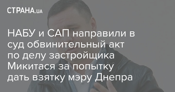 НАБУ и САП направили в суд обвинительный акт в отношении экс-нардепа и экс-президента корпорации "Укрбуд" Максима Микитася, который подозревается в попытке дачи взятки мэру Днепра Борису Филатову.