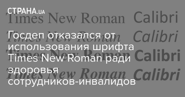 Госдепартамент США отказывается от использования шрифта Times New Roman из-за того, что его декоративные элементы затрудняют восприятие для сотрудников с ограниченными возможностями. В ведомстве его заменят шрифтом без засечек Calibri.