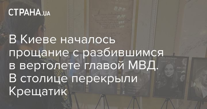 В Киеве в Украинском доме прощаются с руководством Министерства внутренних дел, погибшим в авиакатастрофе в Броварах. В связи с этим перекрыли Крещатик.