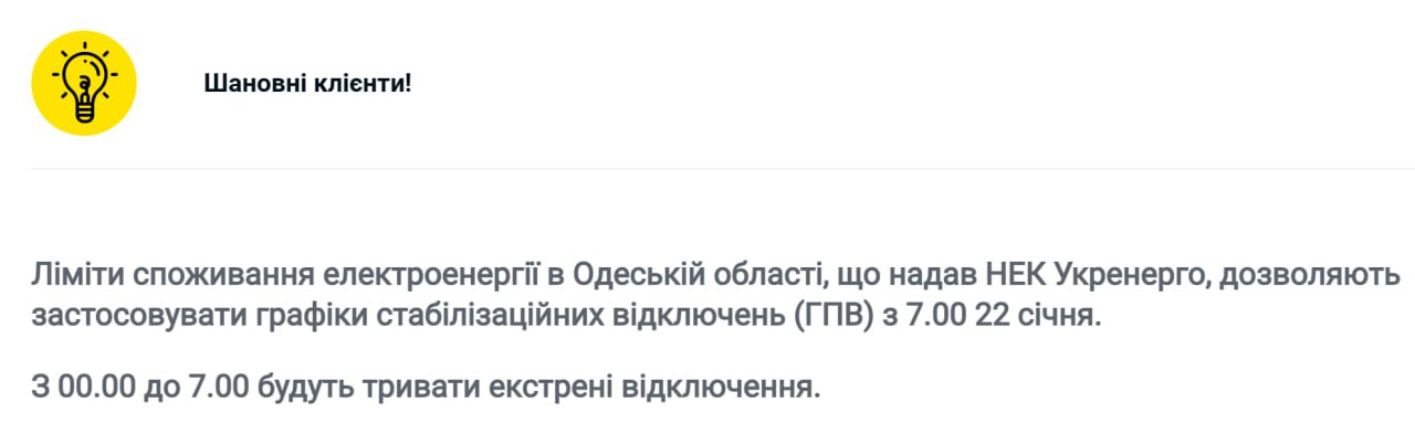 08.22 В Киеве, Одессе и Днепре - с утра плановые отключения света.