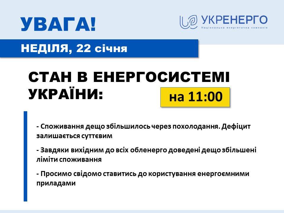 Причина дефицита все та же - устранение повреждений, нанесенных российской ракетной атакой 14 января.
