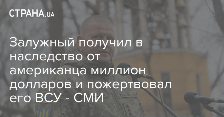 Главнокомандующий Вооруженными силами Украины генерал Валерий Залужный получил по наследству из США один миллион долларов. После этого он передал все полученные деньги на нужды украинской армии.