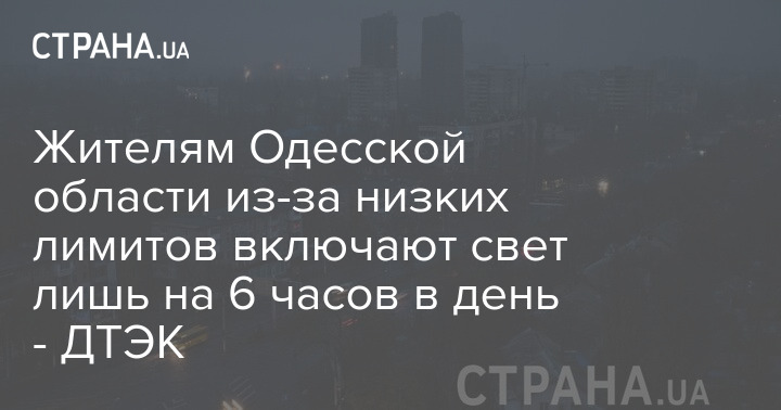 Жителям Одесской области из-за низких лимитов потребления могут включать свет только на шесть часов в день.