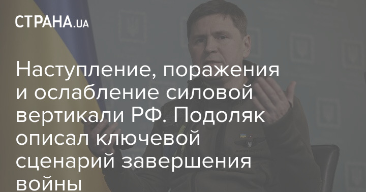 Советник главы Офиса президента Украины Михаил Подоляк описал ключевой, по его оценкам, сценарий завершения войны в Украине.