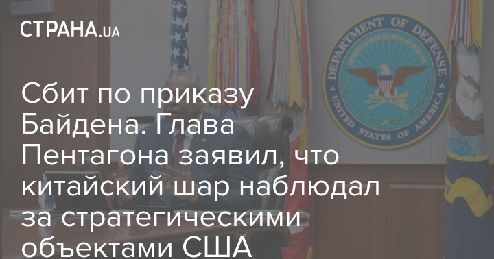 Глава Пентагона Ллойд Остин заявил, что истребитель США успешно сбил принадлежащий Китаю аэростат у побережья Южной Каролины по приказу президента Джо Байдена. С шара велось наблюдение за стратегическими объектами США.