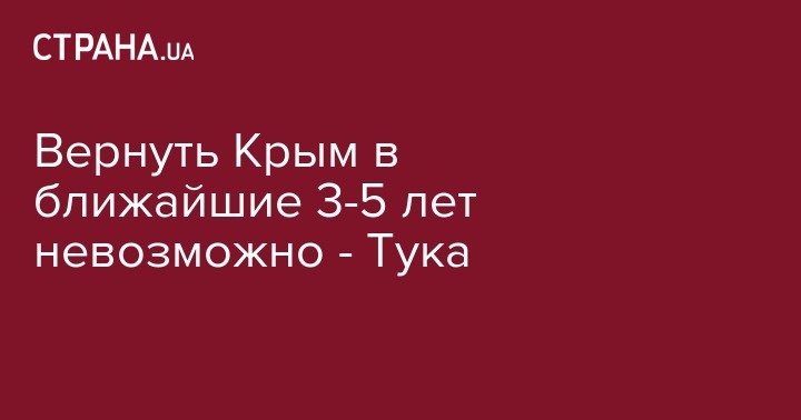 Заместитель министра по делам оккупированных территорий Георгий Тука заявил, что возвращение аннексированного полуострова Крыма в состав Украины в ближайшие 3-5 лет является невозможным. Об этом сообщает "112 Украина".