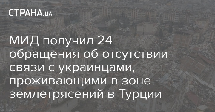 Министерство иностранных дел Украины (МИД) получило 24 обращения об отсутствии связи с гражданами Украины, которые проживают в зоне землетрясений в Турции, которые произошли сегодня, 6 февраля.