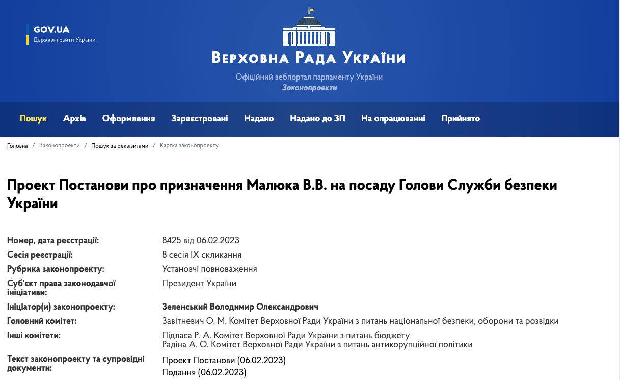 В ноябре 2022 года нардепы от "Слуги народа", с которыми поговорила "Страна", заявили, что если кандидатура Малюка будет внесена в Раду, голосов за его назначение хватит.