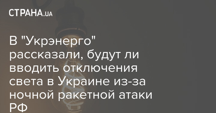 В "Укрэнерго" рассказали, будут ли вводить отключения света в Украине из-за ночной ракетной атаки РФ